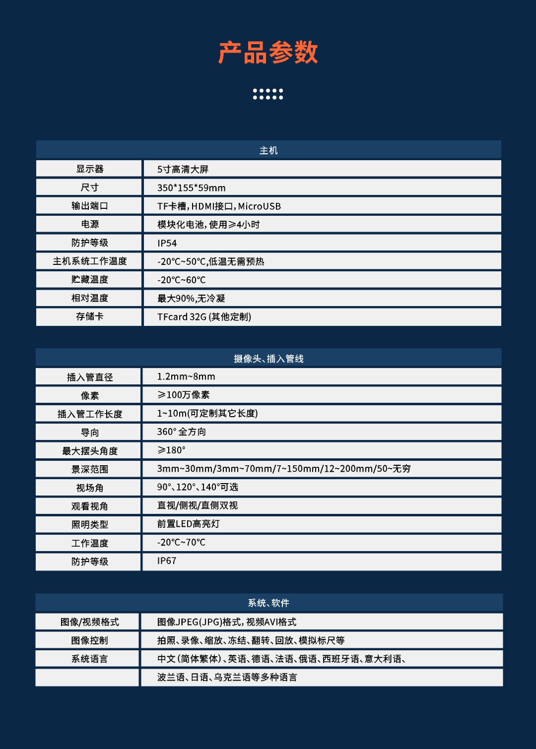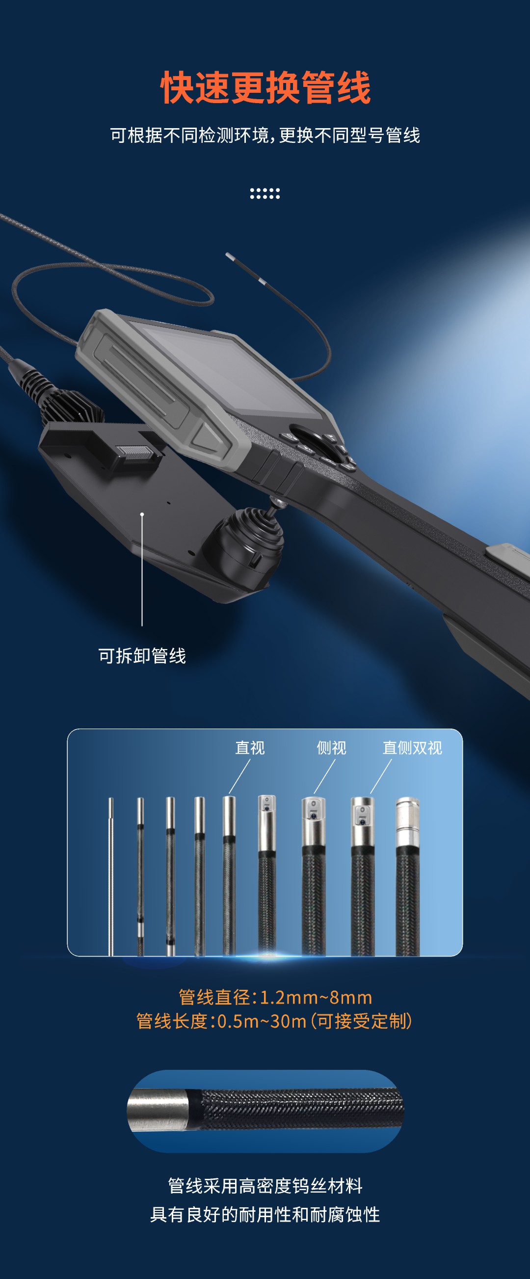 探頭直徑:2.8-8mm管線可選